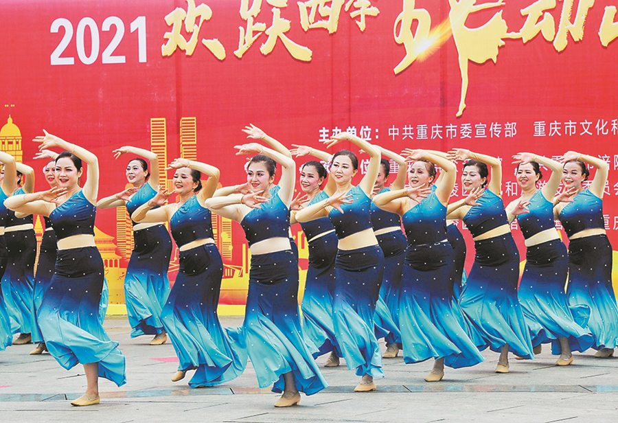 六月三十日,“永遠跟黨走”——二○二一“歡躍四季·舞動山城”重慶市廣場舞展演在涪陵區舉行,來自我市的二十四支廣場舞隊伍同臺演出,慶祝中國共產黨成立一百周年。通訊員 何乾建 攝\視覺重慶