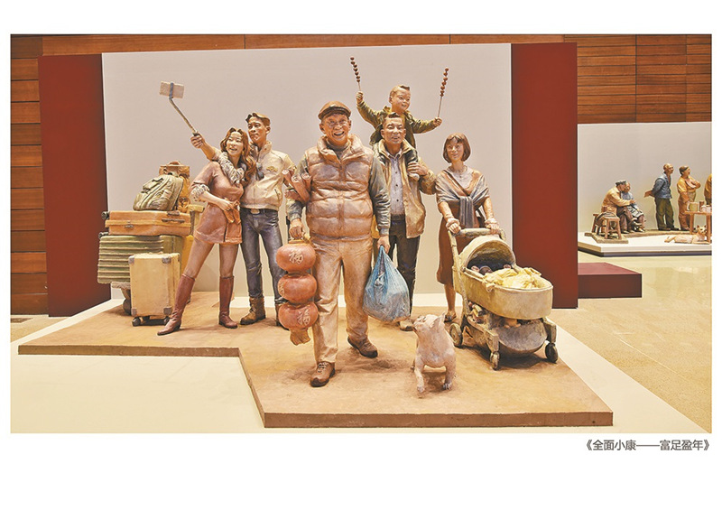 “全面小康”主題雕塑,以幸福之路、生活如歌、鄉里鄉親、夢想啟航、歲月靜好、春暖人間、富足盈年、希望之路8組雕塑,藝術化展現了中國共產黨帶領人民在建設、改革等方面取得的偉大成就。
