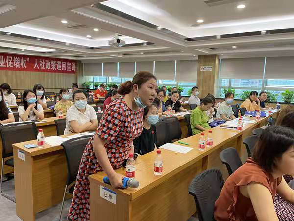 沙坪壩區就業和人才中心統籌就業管理科負責人王文鋼,圍繞就業創業政策進行宣講;沙坪壩區社會保險事務中心二級主任科員薛偉,就社會保險業務經辦進行工作經驗分享;沙坪壩區勞動保障監察大隊監察員肖青青,通過豐富的案例,對涉及勞動者的法律法規進行普及;沙坪壩區勞動人事爭議仲裁院四級主任科員游新宇以勞動仲裁為主題,開展政策法規宣傳;沙坪壩區人力社保局基金監督科科長薛茜從維護全區社;鸢踩椒運行的角度,進行全面細致分析。