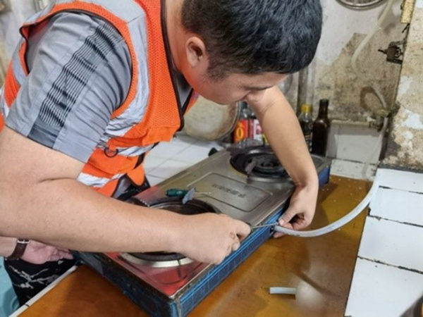 重慶燃氣工作人員為群眾檢查戶內燃氣安全。重慶燃氣集團供圖