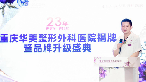 重慶華美整形外科醫院技術院長潘寶華介紹,重慶華美此次品牌升級,除了三級整形外科醫院揭牌,視覺系統也進行了全方位煥新,全新的品牌logo蘊含了重慶華美23年來品牌沉淀的四個維度, 23年歷史沉淀,堅守醫療本質,專注醫美服務,引領行業發展。