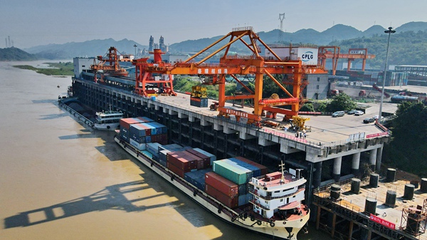 江津綜保區結合實際、順勢而為,利用多式聯運、多通道融合的優勢條件,以西部陸海新通道為核心,充分發揮小南埡鐵路物流樞紐、珞璜港的作用,多方統籌協調開通珞璜港集裝箱班輪航線,先后運營瀘州(宜賓)至珞璜至果園港水水中轉航線、遵義至珞璜至宜昌鐵水聯運航線,滿足成渝地區雙城經濟圈企業、貴州企業需求。