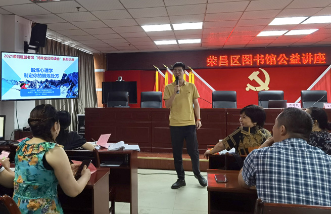 榮昌區圖書館館長楊毅介紹,暑期孩子在家,有的忙著趕作業,有的沉迷打游戲,如果家長不注重教育方式方法,會導致孩子逆反心加重。為了引起更多的家長重視體育鍛煉,榮昌區圖書館特攜手專業的心理機構和家庭教育機構舉辦了這次活動。