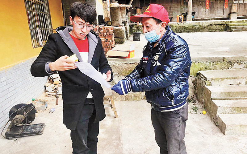 去年春節期間,譚弟雙二話不說接下了蕎壩組新冠肺炎疫情防控任務。在獨自搬運木樁于馬路中央設置路障后,他每天背著30斤消毒水深入農家,在消殺的同時認真進行排查和宣傳,仔細詢問有沒有串門、人群扎堆情況,有沒有發燒咳嗽的村民,有沒有從武漢或湖北回來的人員等等。