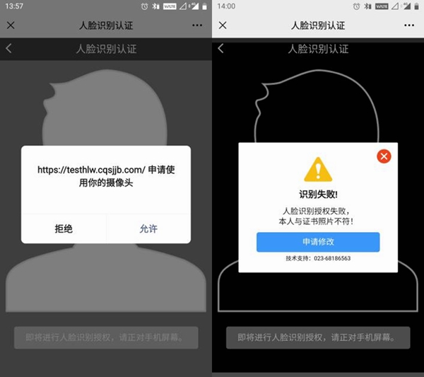 手機掃碼人臉識別。重慶市住房城鄉建委供圖