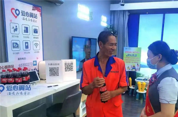 據悉,“愛心翼站”在為老年人、殘疾人及快遞小哥、環衛工人等戶外工作者提供休憩補給之余,還將提供智能技術科普等有溫度的公益優撫服務和愛心服務專區,為廣大勞動者提供便利。