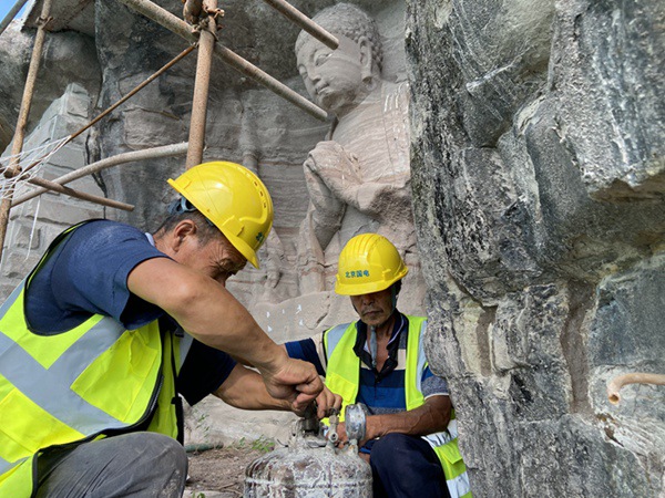 經過兩年多的搶險加固,施工方根據方案通過錨桿錨固、灌漿加固等方式,順利有效地完成了寶頂山結界造像搶險加固工程量的70%,預計今年底將全部完工。(劉政寧、陳柯男、李東、張瑋)
