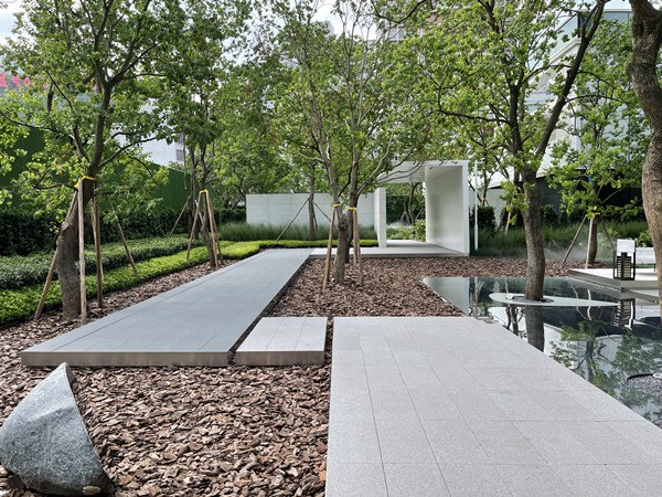 從秘境花園、藝展叢林、芳菲別院到城市會客廳,木賊、烏桕、紅楓、水杉、藍花楹……一步一景,一步一境,營造藏于萬象的自然新境。漫游其間,入眼的只有精致的水景和花境,帶來更干凈、純粹的視覺感受。