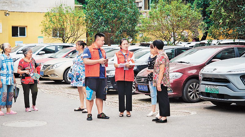銅梁區平安員深入網格征求居民對小區管理的意見。(銅梁區委宣傳部提供)