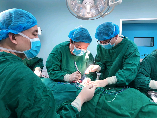 圖為王江允和張朝梅團隊正在手術。院方供圖
