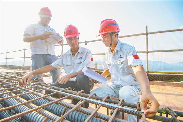 8月2日,萬州高速環線新田港互通,工人在烈日下,為接下來的現澆箱梁做準備。特約攝影 冉孟軍/視覺重慶