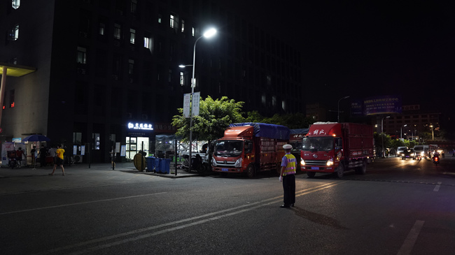 為提升市場容量,海領市場這幾天開始24小時不間斷營業。而按照相關規定,每日7:00—22:00,貨車在中心城區通行,均需辦理綠色通行證。