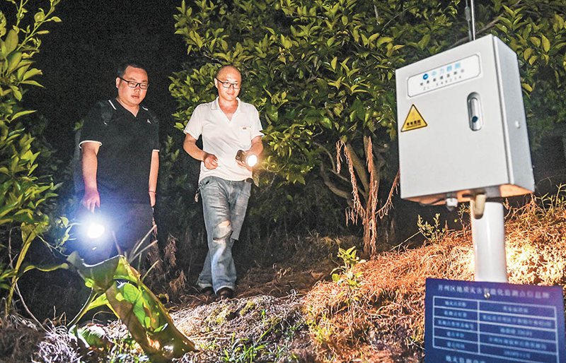 7日晚11時,中和鎮鄧家扁滑坡點,趁著天空只下了點毛毛雨,地災監測員鄧學志又進行了一次巡查。