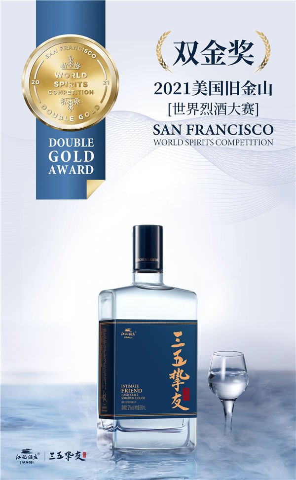 本次比賽中,由重慶江津區白沙鎮江記酒莊釀造的這款清香型白酒“三五摯友”,從全球數千參賽酒品中脫穎而出,摘得賽事最高品質大獎“雙金獎”——這不僅是中國白酒在這項國際賽事中獲得的最高榮譽,也是其獲得的第八項國際酒類賽事大獎。