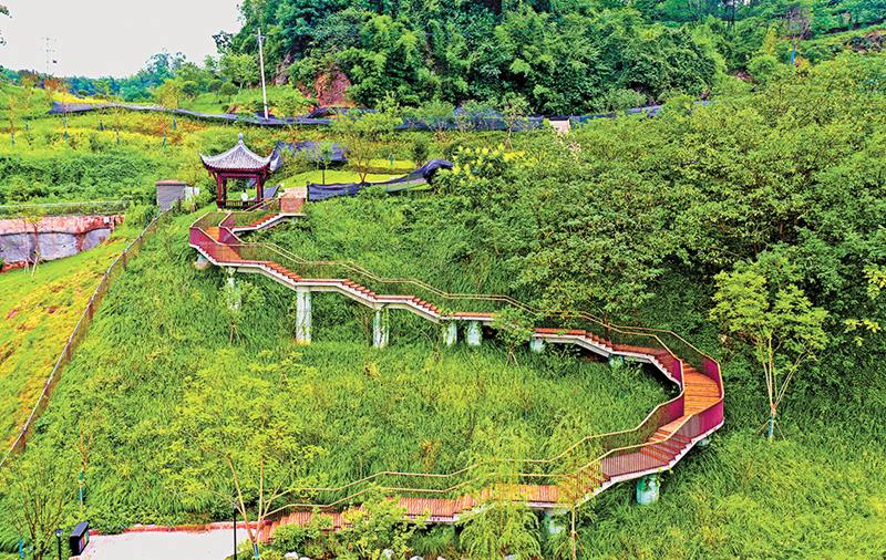 據了解,該公園昔日是一片崖壁坡地,如今被打造成了一個面積4.3萬平方米的綠色生態公園。園內修建了近1公里長的健身步道和棧道,同時栽種了桂花、桃花、菊花、臘梅及香樟等10多種觀賞花卉植物,給當地居民提供了一個休閑健身拍照打卡的好去處。