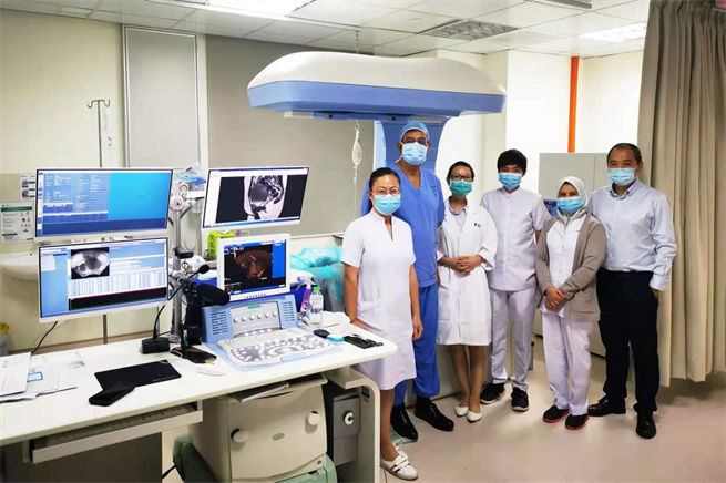 “希望這項技術能夠更好的服務于廣大馬來西亞患者和人民!焙7龅对O備主要發明人之一的王智彪教授代表海扶醫療表示祝賀。(陳琦、徐庶)