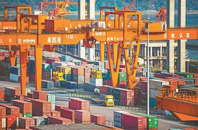 果園港碼頭龍門吊正在吊裝集裝箱。記者 齊嵐森 攝\視覺重慶