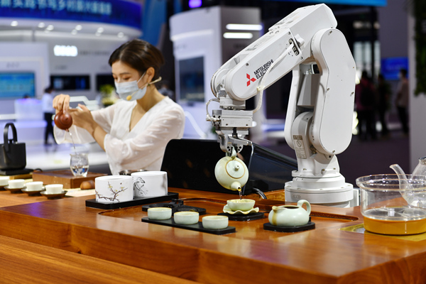 人民網重慶8月23日電 8月23日至25日,2021中國國際智能產業博覽會(以下簡稱智博會)在重慶國際博覽中心舉辦。在智博會上的 “智能制造”展示區,三菱電機(中國)有限公司(以下簡稱三菱電機)展出的茶道機器人備受關注。展會期間,茶道機器人還現場與專業茶道師同臺PK,吸引觀眾紛紛駐足欣賞。