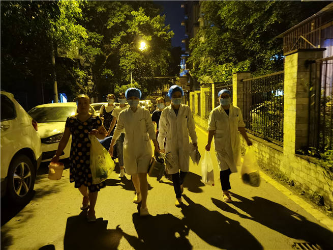 在古南街道綦齒社區,社區衛生服務中心的工作人員奔走在社區樓宇之間,雖然已是深夜11點,但醫務人員不知疲憊,只為更好的為群眾提供疫苗接種服務。