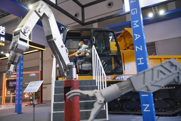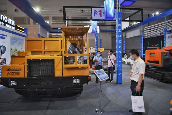 “機身小,靈活,但動力強勁,可配備多種工具頭滿足不同的作業要求,且使用安全高效! 夢馬致新總經理程友祥對展區的設備如數家珍,他介紹的這臺遙控作業機器人是公司的核心產品,智博會開幕第一天就被貴州水利部門訂購,將用于當地小型隧道工程的挖掘作業。