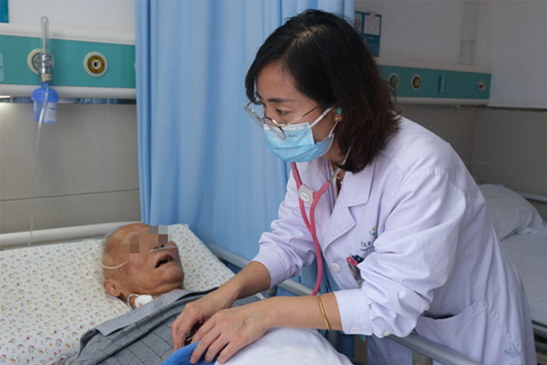 內二科(脾胃。└敝魅沃嗅t師李芳正在檢查患者體征狀況。江北區中醫院供圖