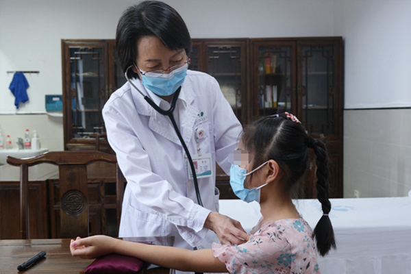 兒科主任、主任中醫師秦耘正在為小患者問診。江北區中醫院供圖