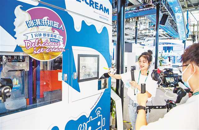 8月23日,重慶國際博覽中心,參觀者正在體驗智能冰淇淋機器人。記者 鄭宇 攝/視覺重慶