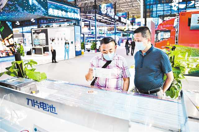 8月23日,重慶國際博覽中心,嘉賓正在了解刀片電池。記者 謝智強 攝/視覺重慶