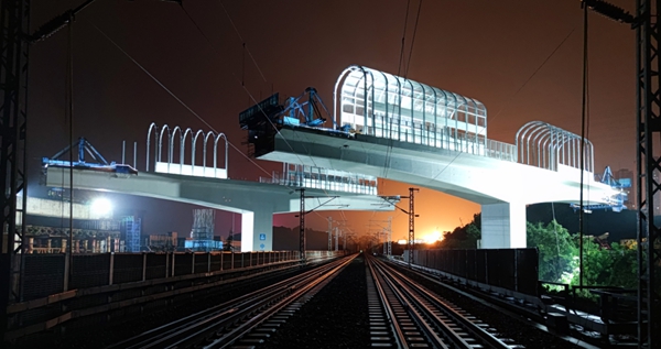 軌道交通5號線上跨渝貴高鐵橋梁轉體完成