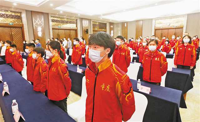 在當天的誓師大會上,重慶市代表團的教練員、運動員代表莊嚴宣誓,將發揮頑強拼搏的精神,努力在本屆全運會上取得優異成績,展示良好形象。(記者 黃琪奧)