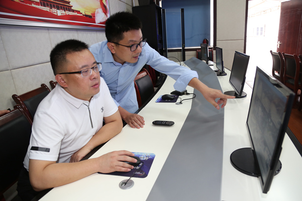 合陽城街道工作人員通過綜治中心視頻監控系統查看各網格情況。合陽城街道供圖