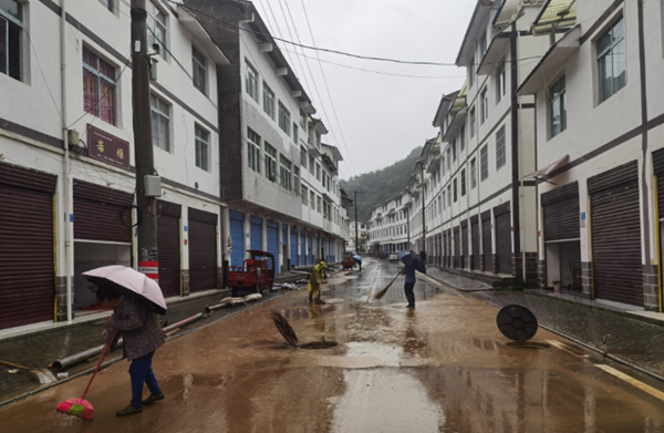 東安鎮路面清淤。城口縣委宣傳部供圖
