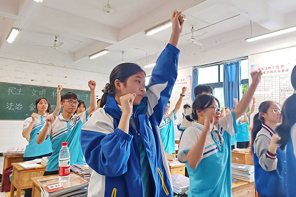 田家炳中學為新學期加油。江津融媒體中心供圖