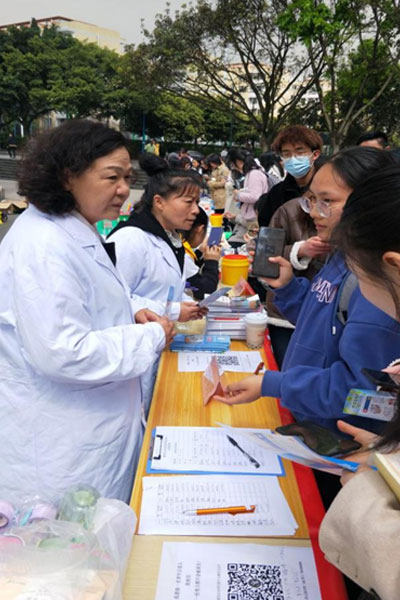 嚴曉峰進社區為群眾派發預防結核病宣傳資料。重慶市公共衛生醫療救治中心供圖