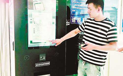 駕駛員在自助體檢機上打印體檢報告。(重慶晨報供圖)