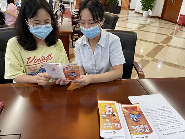 針對分行只有一個營業網點,客戶均為對公客戶,無個人客戶的實際情況,進出口銀行重慶分行以陣地化宣傳為主,在營業廳懸掛“反詐拒賭、安全支付”“打擊治理電信網絡詐騙、跨境賭博,我們在行動”等主題橫幅標語;制作防詐拒賭宣傳小冊子,發放給來行辦理業務的客戶;同時指定專人作為防詐拒賭宣傳員,為客戶詳細講解相關知識、推薦客戶下載安裝“國家反詐中心”APP、關注“國家反詐中心”公眾號等,做到網點客戶宣傳全覆蓋。