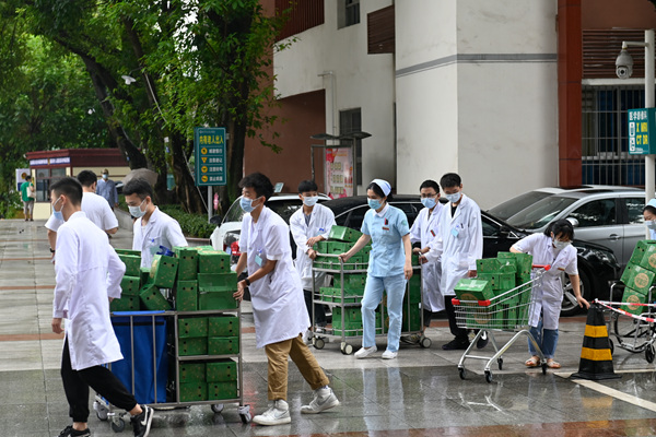 上午8點,清水村的6000多斤脆香獼猴桃來到了重慶市第十三人民醫院。