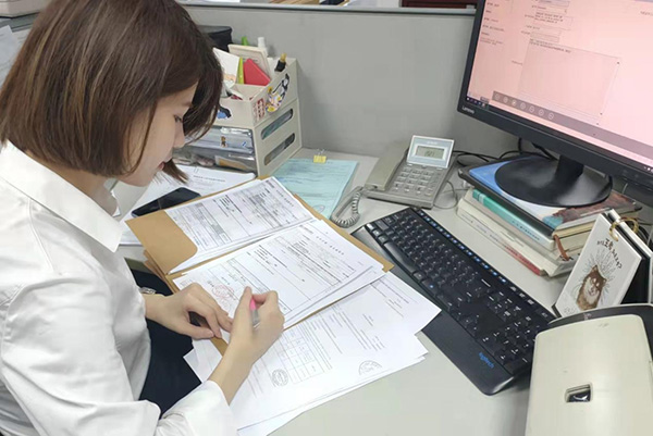 民生銀行重慶分行單證處理崗審核業務資料。民生銀行重慶分行供圖