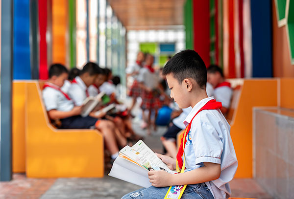 孩子們在校園書吧里專心閱讀。袁孝椿攝