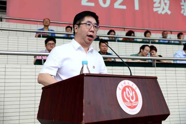 開學典禮上,孟東方以《以“學”為本 以“習”立業》為題講話,勉勵同學們將重師文化融入重師人的血脈,以同心筑夢的重師情結,開啟逐夢、圓夢的新的旅程。