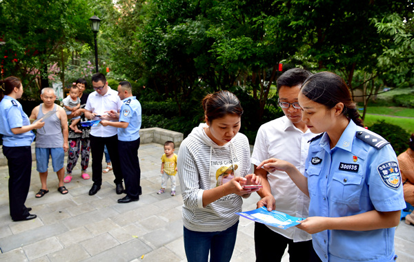 民警在社區宣傳易聯調小程序。周舸攝