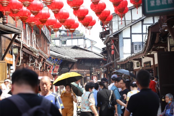 磁器口古鎮重新開街,游客眾多。江曉蕓攝