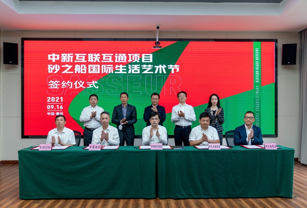 人民網重慶9月17日電 (胡虹)16日,中新互聯互通項目·砂之船國際生活藝術節簽約儀式在重慶市中新示范項目管理局舉行,重慶市中新示范項目管理局、重慶市商務委員會、重慶市文化和旅游發展委員會、重慶兩江新區管理委員會、砂之船商業管理集團有限公司簽訂《關于舉辦國際生活藝術節助力共創高品質生活戰略合作協議》。