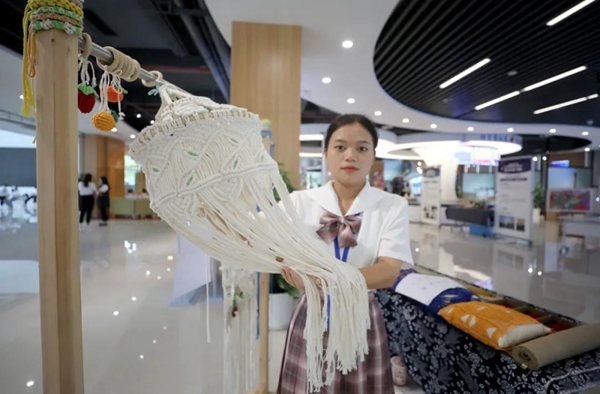 《“繩”奇非遺》項目團隊成員展示作品。雷鍵攝