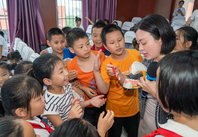 西南醫院口腔科專家給小朋友講解愛牙護牙知識 。院方供圖