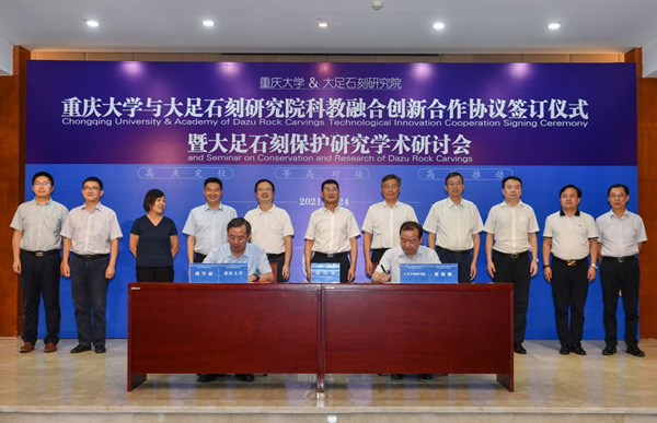 重慶大學與大足石刻研究院簽訂科教融合創新合作協議。鄒樂攝