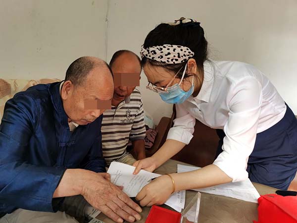 每年八月是工行重慶石柱支行年度較為繁忙的一個月,由于該行負責代發石柱縣部分社保養老金工作,網點內每天上午客流量都超過300人次。八月中旬的一天,工行重慶石柱支行接待了一位神色焦急的客戶彭某,他手里拿著兩張醫?ㄕ埱蠊ぷ魅藛T幫忙激活!拔业陌謰屇晔乱迅,且行動不便,目前都在鄉下養老院里面臥床療養,沒法親自前來辦理業務,該怎么辦?”工作人員見狀,連忙耐心地與其溝通,在詳細了解情況之后,大堂經理表示:“如果兩位老人確實存在著困難, 我們可以提供上門服務。核實情況后,可以由親屬代辦業務!