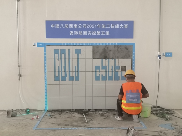 瓷磚貼面比賽現場。中建八局西南公司供圖