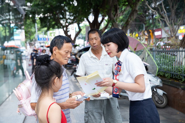 謝小紅走上街頭為市民講解金融知識。受訪者供圖