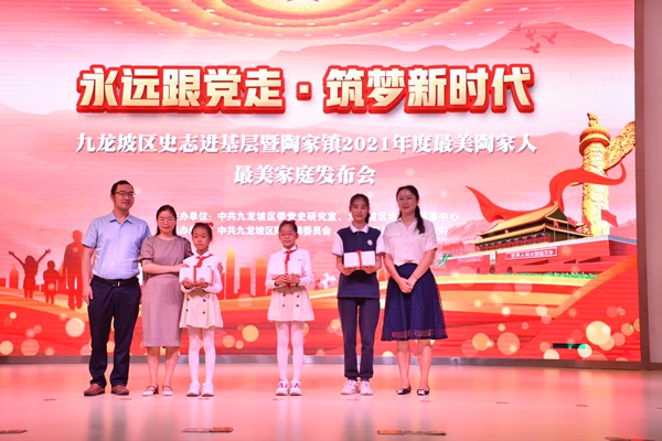 人民網重慶9月28日電 28日上午,“永遠跟黨走 筑夢新時代”九龍坡區史志進基層暨陶家鎮2021年度“最美陶家人”“最美家庭”發布會在九龍坡區陶家鎮小學多功能廳舉行。